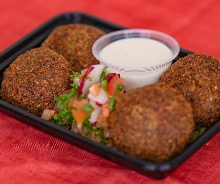Cheese Rolls, Falafel, Hummus, Salad, Rice, Garlic & Tahini